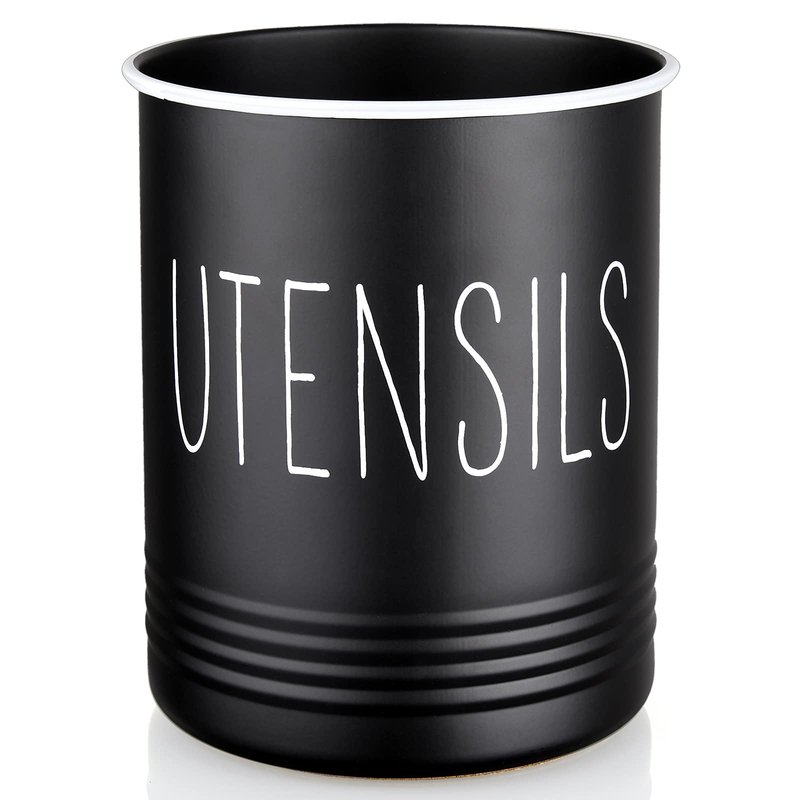 - Vintage Stylings for Kitchen Decor: The black utensil holder with well-printed white written "Utensil", black highlighting on the edge of the top, and paired the whole shape, which is simple, elegant and classy, lends a charming vintage feel to your rustic vintage designed kitchens.