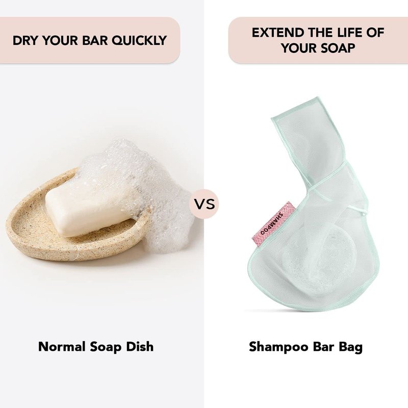 - REDUCE PLASTIC WASTE: Our Bottle-free Beauty Soap Saver Bag is designed to store your body wash, conditioner & shampoo bars without using plastic bottles or packaging. This stylish and sustainable alternative is perfect for on-the-go use and helps reduce the number of plastic bottles you use each month.