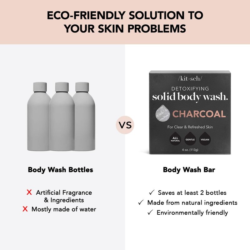 - CARES FOR THE ENVIRONMENT: Kitsch's Exfoliating Bar Soap for Men is 100% compostable, zero waste, and plastic-free. Our body bar soap for oily skin for men revitalizes the skin and helps save the planet by reducing plastic waste equivalent to 2 liquid body wash bottles.