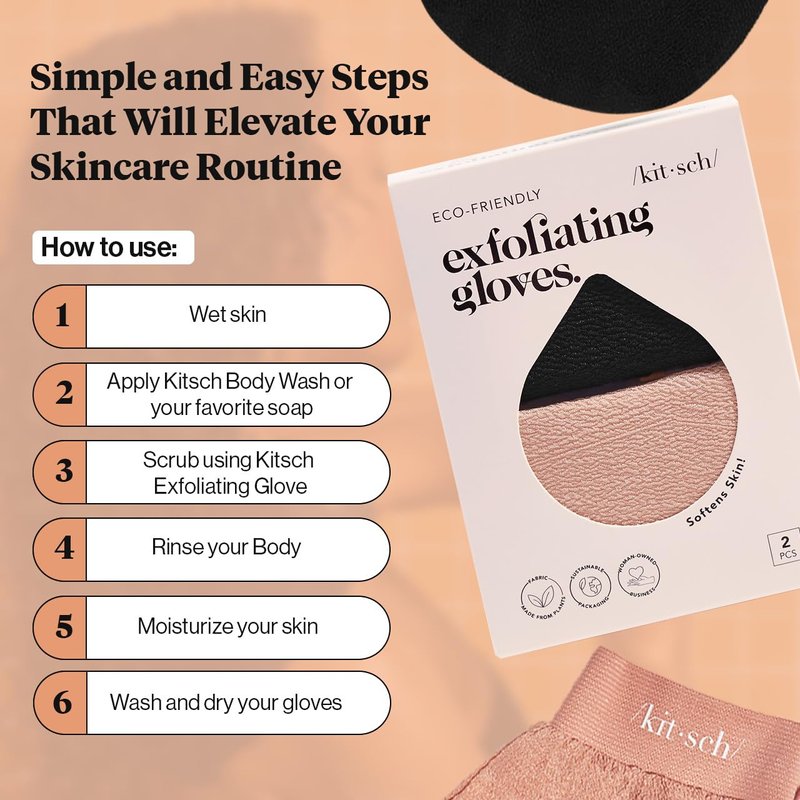 - SUSTAINABLE: Scrub away dead skin cells with Kitsch Eco-friendly Body Exfoliating Glove. These exfoliating body scrub gloves are made from plants, making them safe and perfect for those with sensitive skin. They're gentle on the environment, making it a truly sustainable choice.