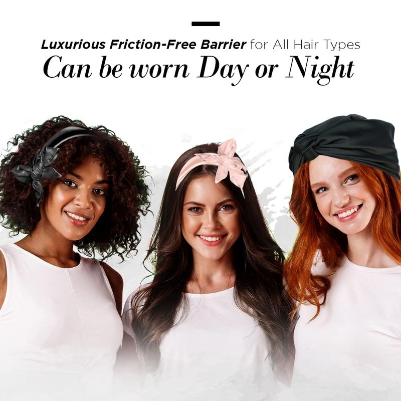 - DAY AND NIGHT: Versatile Style: Our satin hair scarf is your day-to-night go-to. Wrap it in endless styles for bedtime and effortlessly rock a fashionable daytime look. Front, back, side, satin hair bandana, turban - the options are endless!