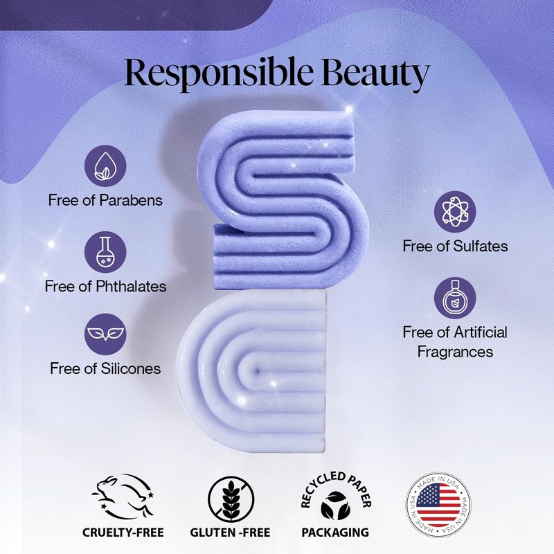 - PACKED WITH SAFE AND NATURAL INGREDIENTS: This toning solid conditioner bar is Vegan, and uses bio-based ingredients. Our vegan purple toner for blonde hair is free of parabens, phthalates, silicones, and artificial fragrances, ensuring a safe and worry free use for you.