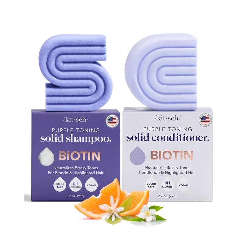 Kitsch Purple Shampoo & Conditioner Bar for Color Treated & Grey Hair, Made in Us, Toning Bar Shampoo & Conditioner for Blonde, Grey & White Hair
