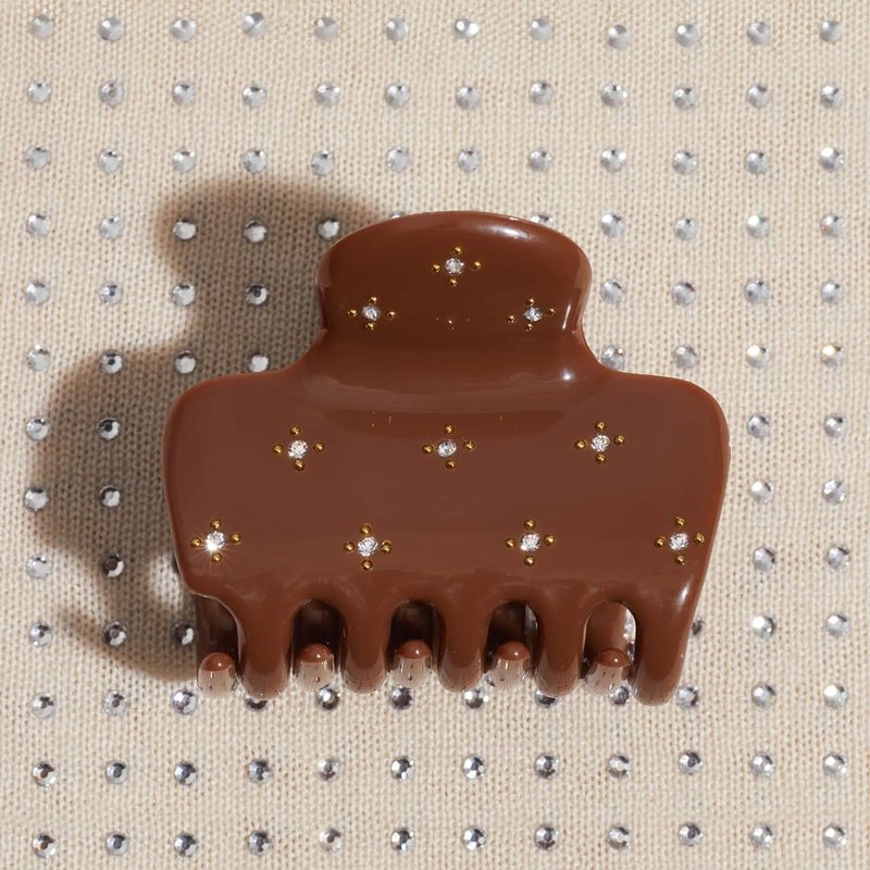 Kitsch Recycled Plastic Rhinestone Medium Puffy Claw Clip 1pc- Camel