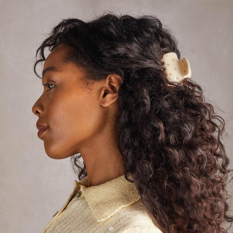 Kitsch Recycled Plastic Rhinestone Medium Puffy Claw Clip 1pc- Ivory