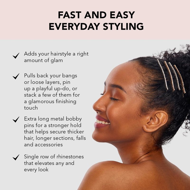 - EXTRA STRONG GLAM: Kitsch Metal Extra Long Rhinestone Bobby Pins wedding hair accessories for women in gold and silver offer a robust hold with an extra sparkly touch for added glam.