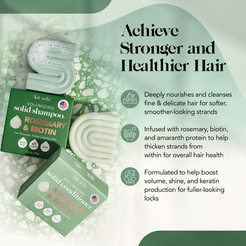 - VOLUME BOOSTING COMBO: Infused with rosemary and biotin, this bar shampoo and conditioner set provides a luxurious lather while adding volume to your hair, making it look fuller and healthier. This rosemary shampoo and conditioner with biotin is ideal for both men and women experiencing thinning hair.