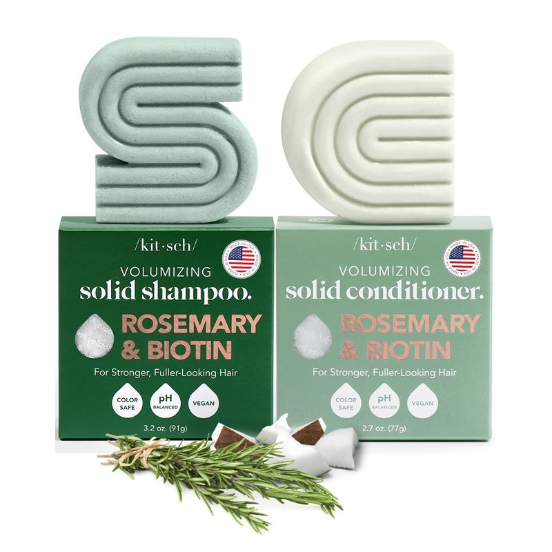 Kitsch Rosemary & Biotin Shampoo and Conditioner Bar Set for Thinning Hair - 2pc Volume Shampoo Bar & Conditioner Bar for Hair Growth for Men and Women, Hair Thickening & Regrowth Combo, Paraben Free