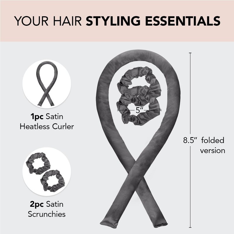 Kitsch Satin Heatless Curling Set - Overnight Hair Curlers to Sleep in, Heatless Curls, Heatless Hair Curler Overnight Curls, Heatless Curling Rod Headband, No Heat Soft Curlers Hair Rollers -Charcoal