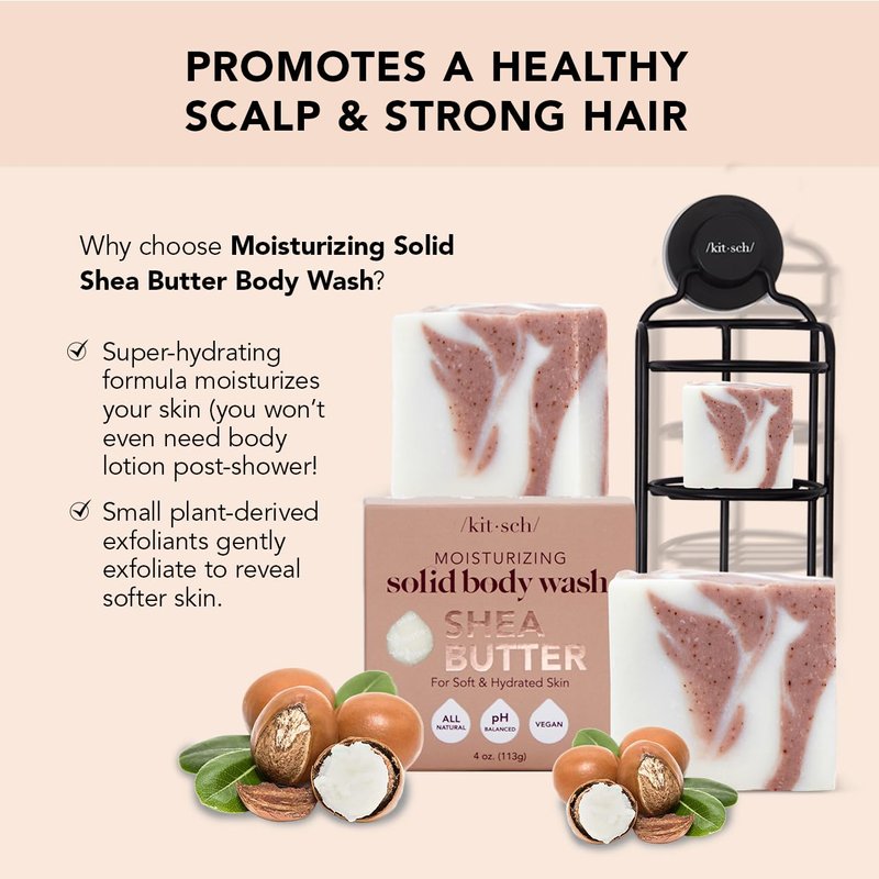 - CLEANSE AND HYDRATE YOUR SKIN: Introducting Kitsch Shea Butter Solid Body Wash! This body bar features a super-hydrating formula ensures that your skin remains moisturized after your shower, so you won't need body lotion after.