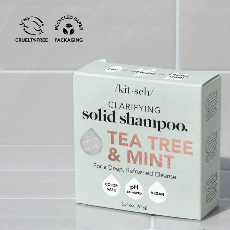 - 2-in-1 TEA TREE SHAMPOO BAR: Kitsch Clarifying Solid Shampoo Bar for Hair is made with tea tree oil and mint, which help to remove any built-up oils or products from your hair. It also helps to soothe scalp irritation and combat dandruff.