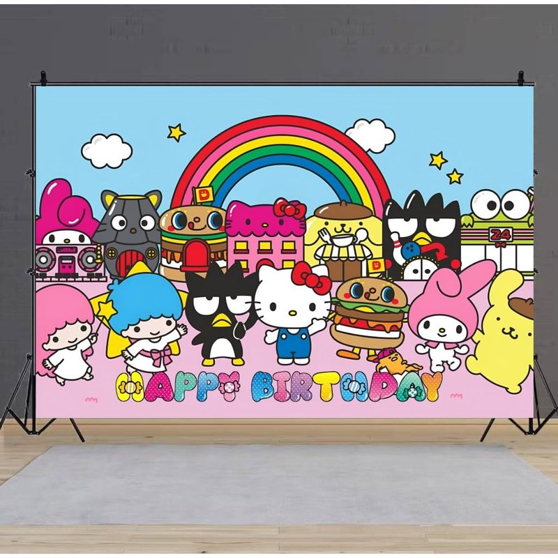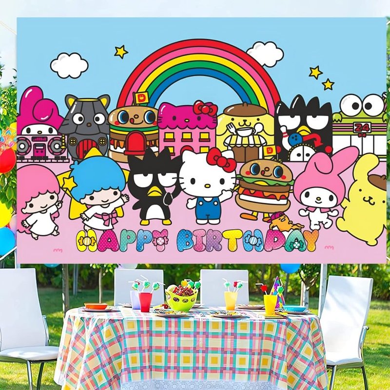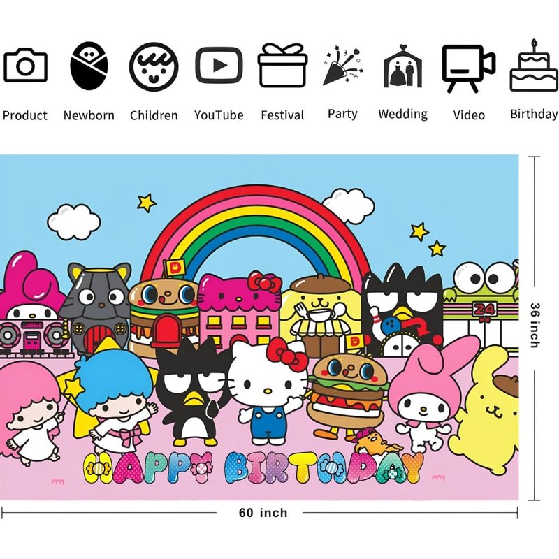 - 【Kitty and Friends Birthday Party Supplies】One 59x35.4 inches Happy Birthday Backdrop Banner, Cinnamorll Happy Birthday backdrop banner is very popular among kids.