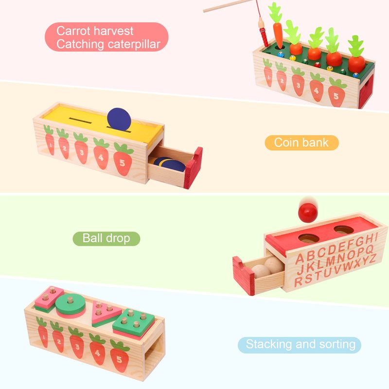 - 🎡 Creative and Plentiful: Toys are fun and can keep your children addicted for hours! Ball Drop, Coin bank, Stacking, Carrot Harvest, Catching worms. Giving them a chance to play and it will be stunning.