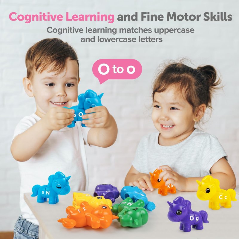 - Alphabet Learning Toys: The Long-lasting alphabet set is an manipulation game for improving fine-motor skills in classroom, homeschooling aid. Kid size with the smooth center connector part makes it good for small hands to grip and put little animals together with ease. The matching letter toy is fun to play with since there are endless matching possibilities.