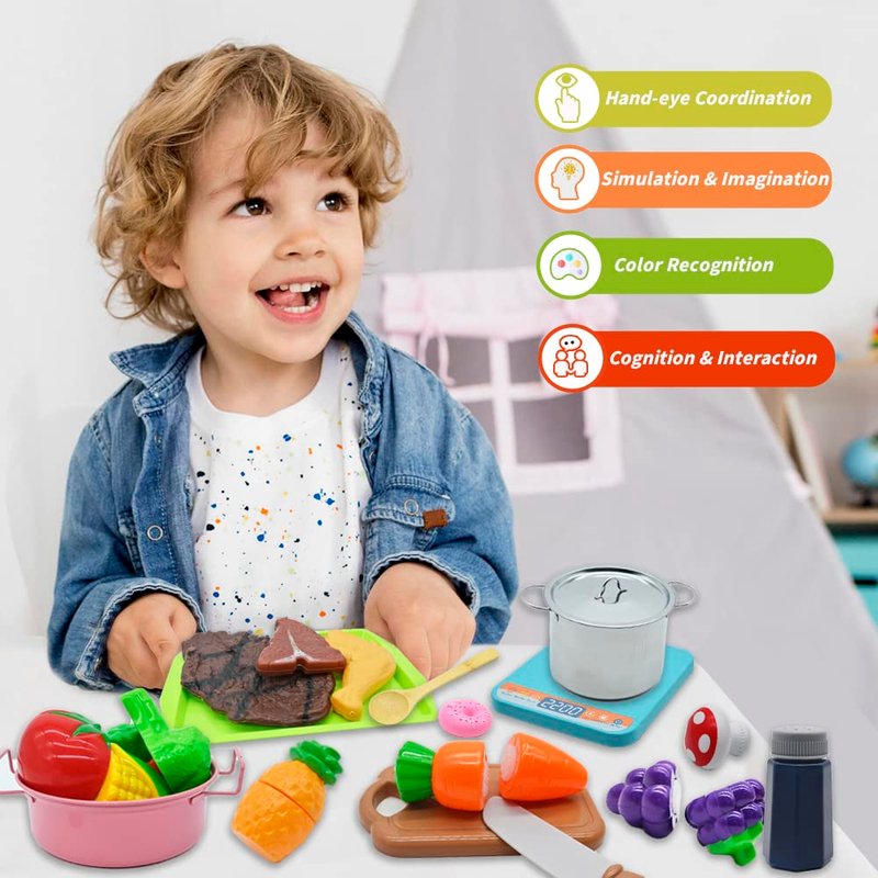 - LEARNING THROUGH PLAY:Our cooking toys set not only entertains but also stimulates children's learning and creativity.Children can learn about ingredients, cooking techniques, laying a solid foundation for their growth and future. We have designed a storage box specifically for children to organize and store their play kitchen accessories.