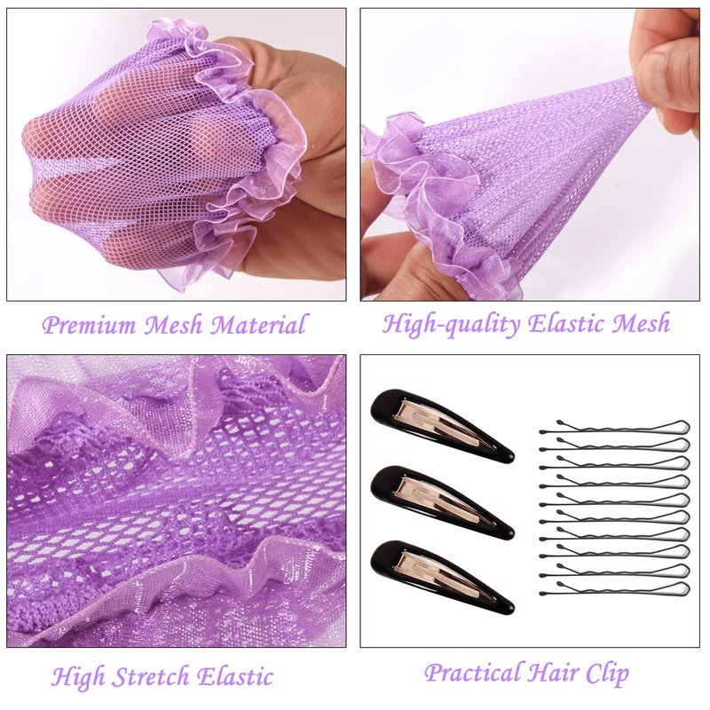 - 【Package Include】 Includes 6pcs high quality durable bun hairnets with lace(black hairnet *2pcs, red/purple/pink/blue hairnet *1pcs/color), so you can match different colors of bun hair nets to different occasions and colors of clothes; 3pcs teardrop-shaped barrettes and 10pcs U-shaped hair clips which can help you fix your hair better;