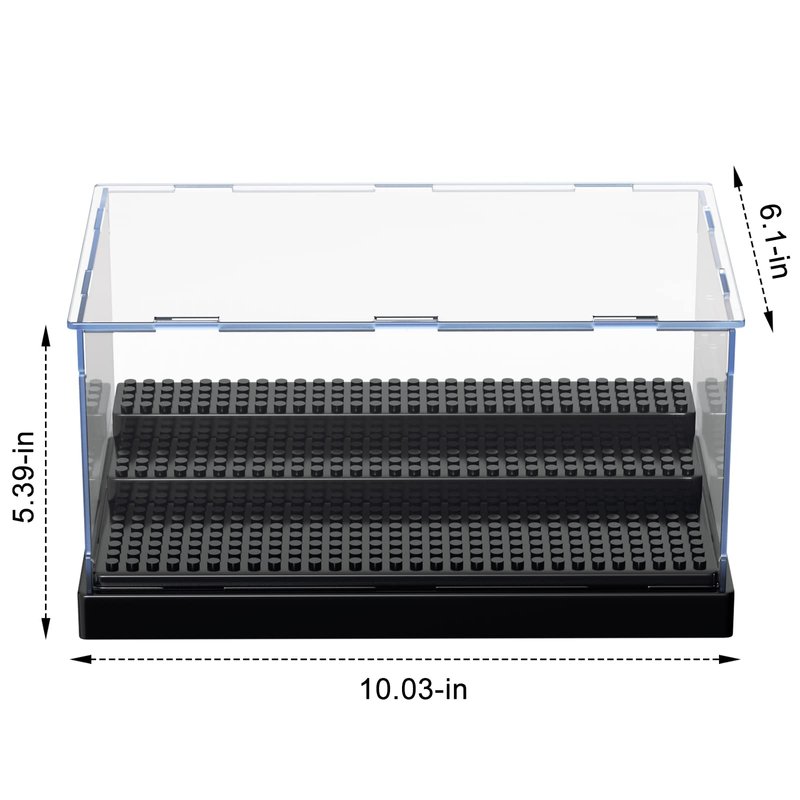 - 【COMPATIBLE DISPLAY CASE】This display case is compatible with various brands of vinyl figures, action brick building blocks, toy cars, and more. It allows you to arrange and display your minifigures according to their size and quantity.