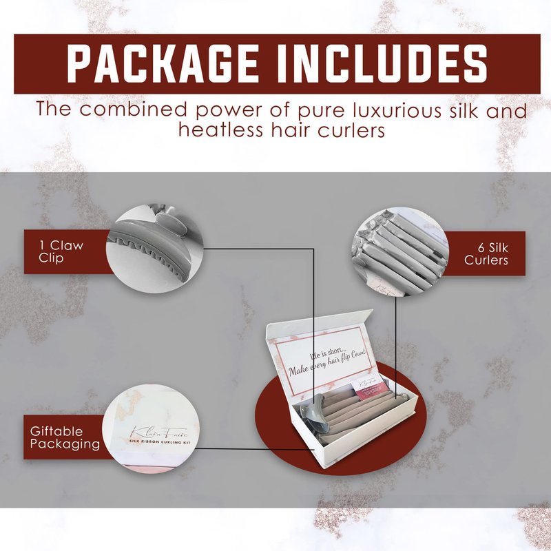 Our no-heat hair curler set comes with 6 silk ribbon curler, and a plastic hair clip, Everything you need to become your own hairstylist. Spending the night in or heading out on a weekend getaway, take your Mulberry silk curl former set with you so you can have impeccable curls where and when you want them. Start your healthy go sleek hair journey with our silk ribbon curler set today. Not only will it restore your hair from past heat damage, but it will also boost your confidence by ensuring every day is a good hair day.