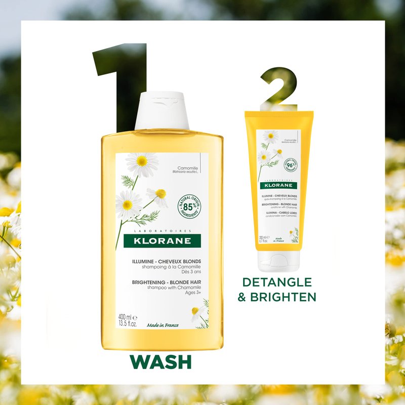 Klorane – Brightening Shampoo with Chamomile – Enhances Highlights & Brightens Blonde Hair – Hydrogen Peroxide, Ammonia, Silicone, Paraben & Sulfate Free – 13.5 fl. oz.