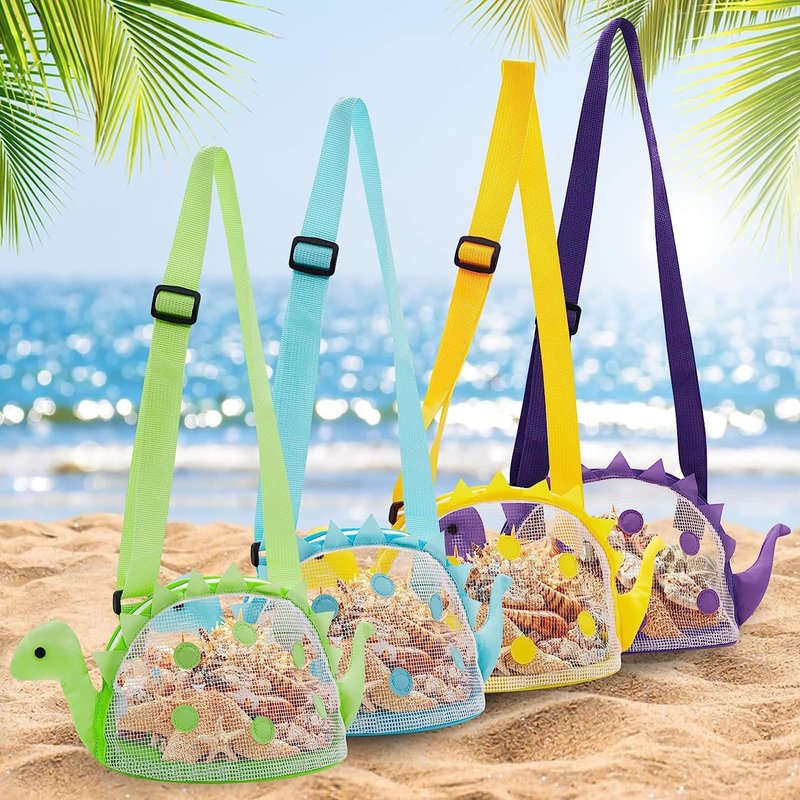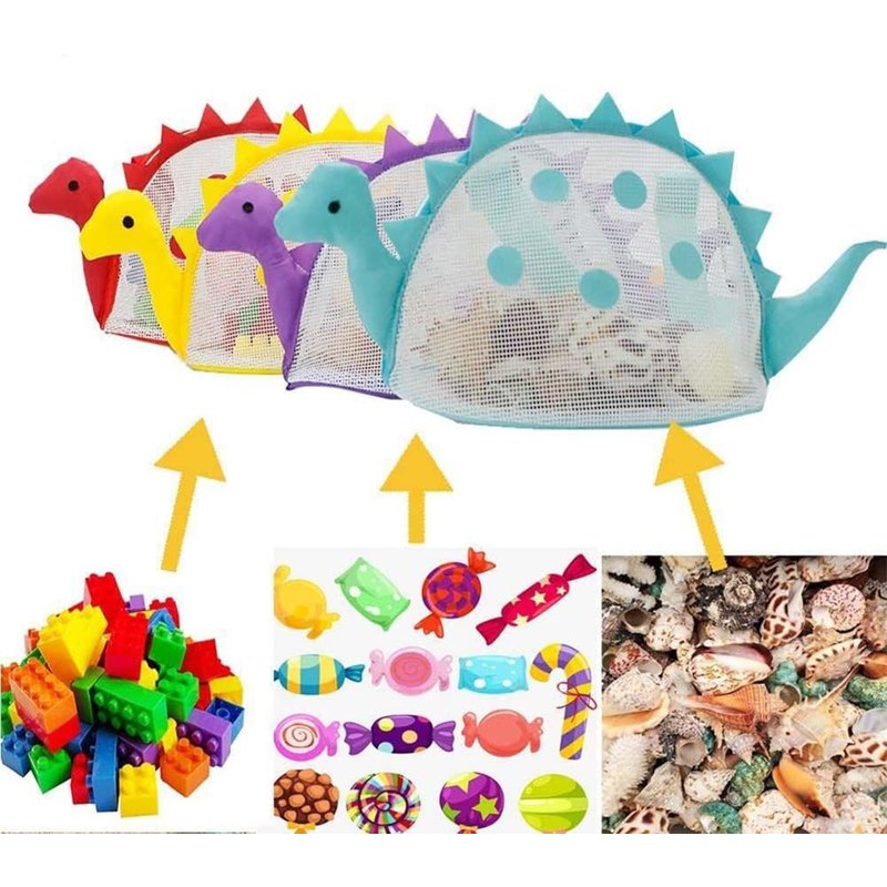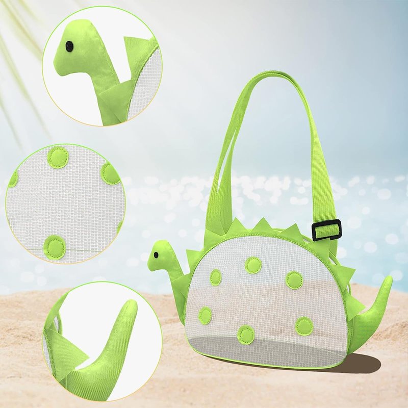 The beach mesh bag is cartoon dinosaur appearance, special mesh beach bags attract kid's attention and they will like it.