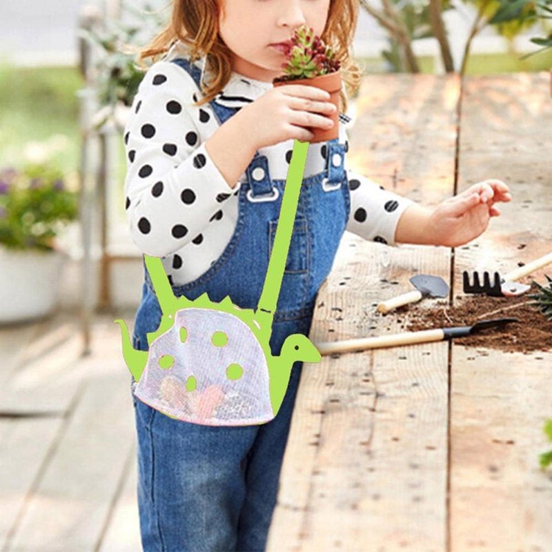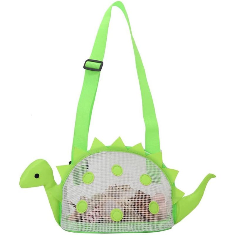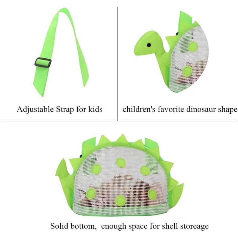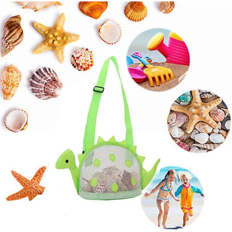 KMDJG Beach Toy Mesh Beach Bag, Kids Shell Collecting Bag, Dinosaur Beach Toy Bag Totes for Holding Shells Beach Toys, Swimming Accessories for Boys Girls Picking Up Shells and Toys (Green)