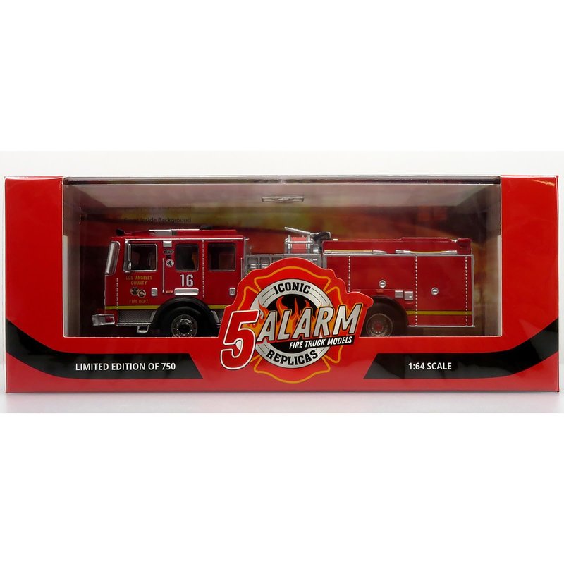 Brand new 1/64 scale diecast model of KME Predator Fire Engine #16 "Los Angeles County Fire Department" Red "5 Alarm" Series Limited Edition to 750 pieces Worldwide die cast model by Iconic Replicas 64-0456