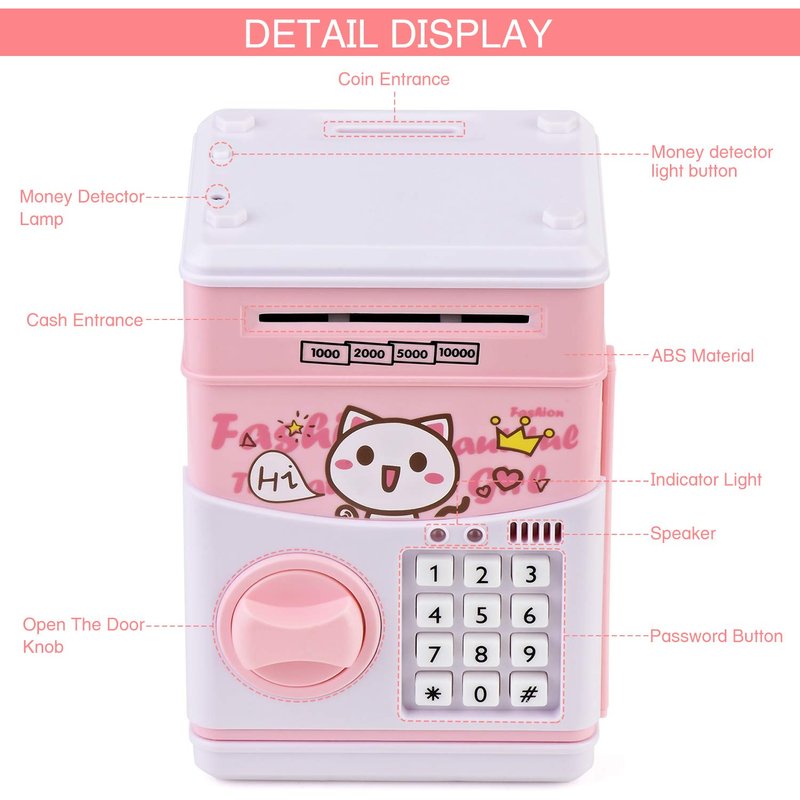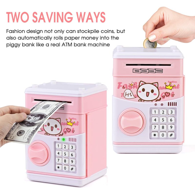 - 【FUN AND EDUCATIONAL】- Teach your kids to take care of money with our amazing electronic piggy bank! Easy to use and fun, this interactive money bank is your kid’s first step toward financial independence.
