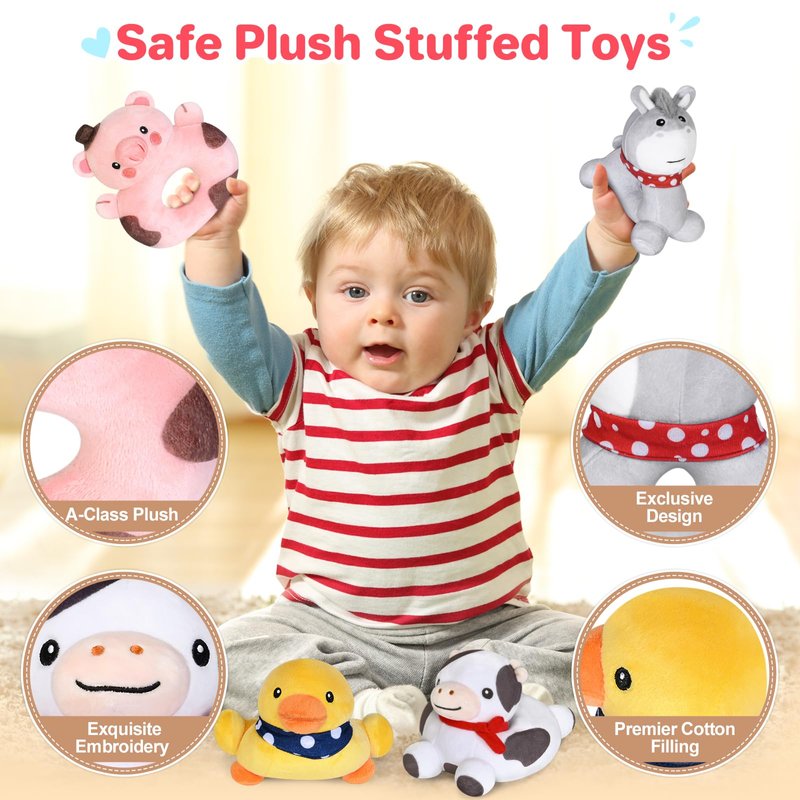 - Interactive & Accompany: It's a perfect interactive toy for newborns. Through farm theme-simulated scenes and role-playing with these stuffed animals, will improve the parents-baby interaction. It's an accompanying toy for soothing baby newborn and great for bedtime stories. Suitable for baby girl boy 0-12 months.