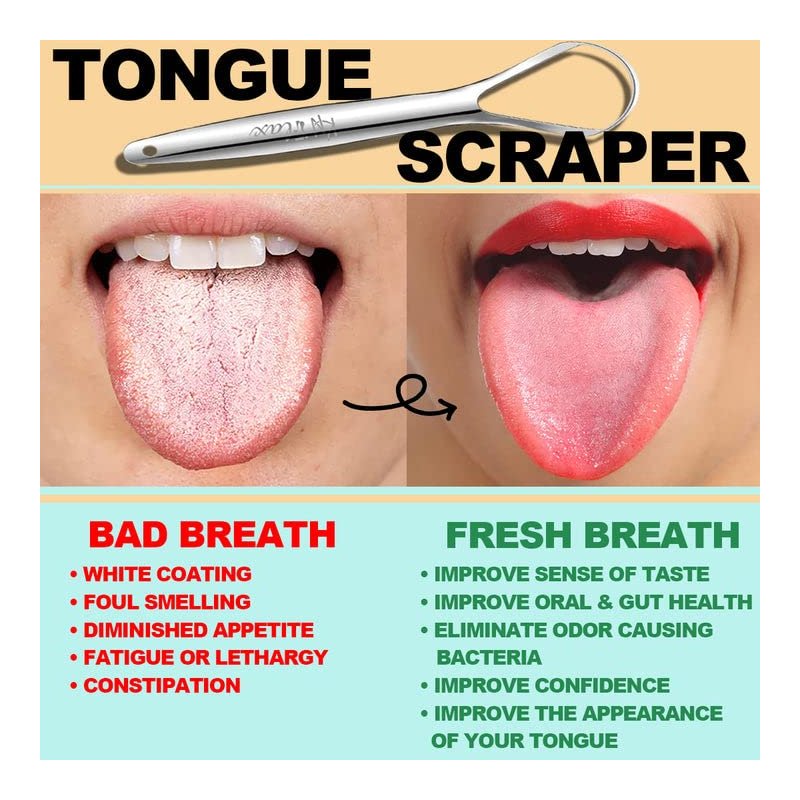 - GET RID OF BAD BREATH - Morning breath...stinks! And bad breath treatment for adults can be challenging to find. Brushing your teeth & tongue more wouldn't work; drinking more water wouldn't either. A metal tongue scraper is the perfect tool to put an end to embarrassing bad breath! Our tongue scraper will clean your tongue so thoroughly that your anxiety & low self-esteem will slip right away. You deserve the best among all the tongue brushes, scrapers & cleaners on the market.