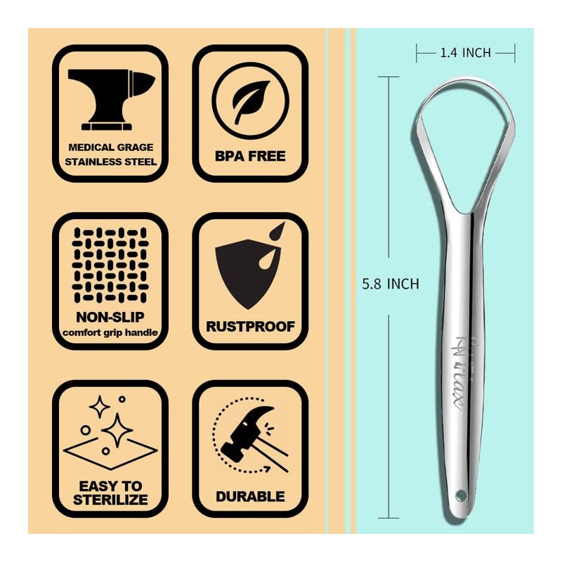 - DENTIST APPROVED - Each tongue scraper cleaner benefits from a curved head that perfectly fits your tongue, with screw-on handles that are easier to navigate. Our long-lasting tongue scraper is made of durable, rust-proof, hygienic, medical grade stainless steel. Our tongue scrapers are so effective that even a dentist would approve of them to eliminate bad breath, reduce plaque, prevent digestive problems, boost immune system, and promote better oral & overall health!
