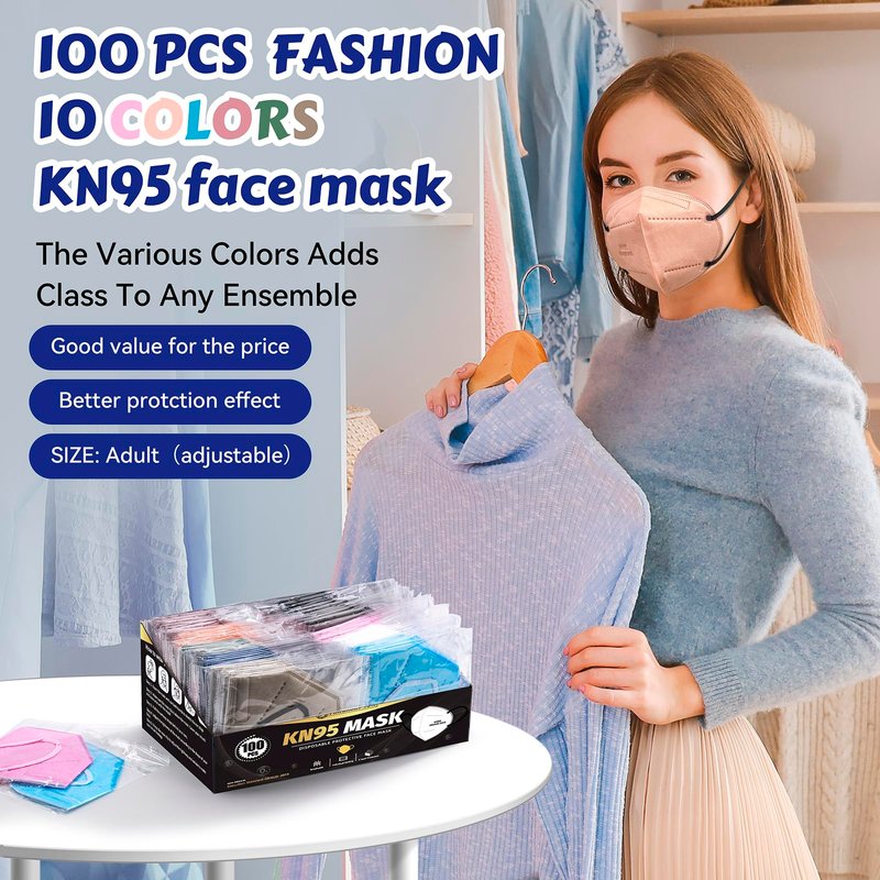 KN95 Face Masks Adults Disposable - 100 Pack KN95 Masks Protective Comfortable KN95 Masks 5-Layer KN95 Breathable Safety Face Masks & 5 Adjustable Mask Holder KN95 Masks 10 Colors