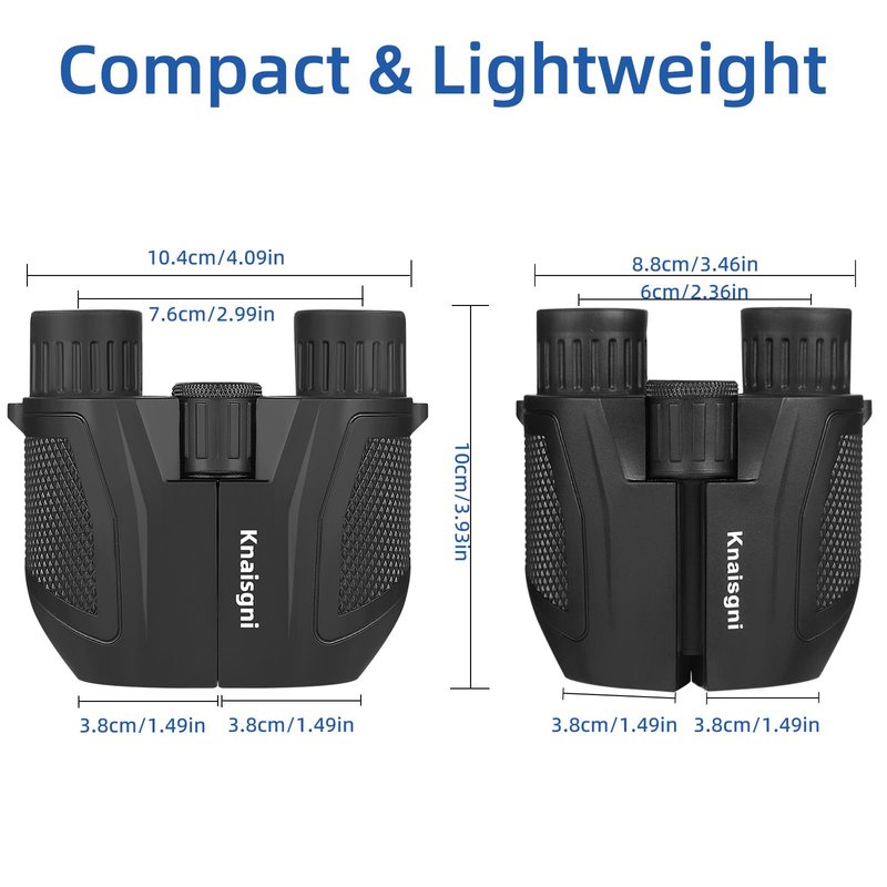- 🐅LIGHTWEIGHT AND PORTABLE🐅-- The foldable design and only 0.5lb lightweight make them can be folded into palm-size, so it's ideal for an even broader range of long-distance pursuits. Moreover, the external non-slip rubber armor of the binoculars can absorb shock while provide a firm grip, offering you excellent user experience.