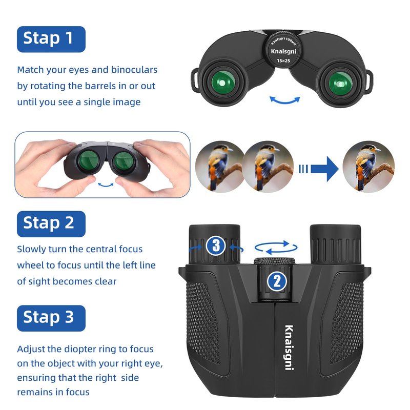 Knaisgni Binoculars for Adults and Kids, 15x25 High Powered Compact Binoculars, Portable Binoculars for Bird Watching, Theater and Concerts, Sightseeing, Opera Concerts