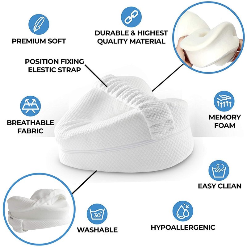 Memory Foam Knee Pillow for Side Sleepers | Between the Knees Sleeping Pillow for Sciatica, Lower Back and Knee Pain | Adjustable Strap with Extension Keeps Pillow Between Legs When Sleeping