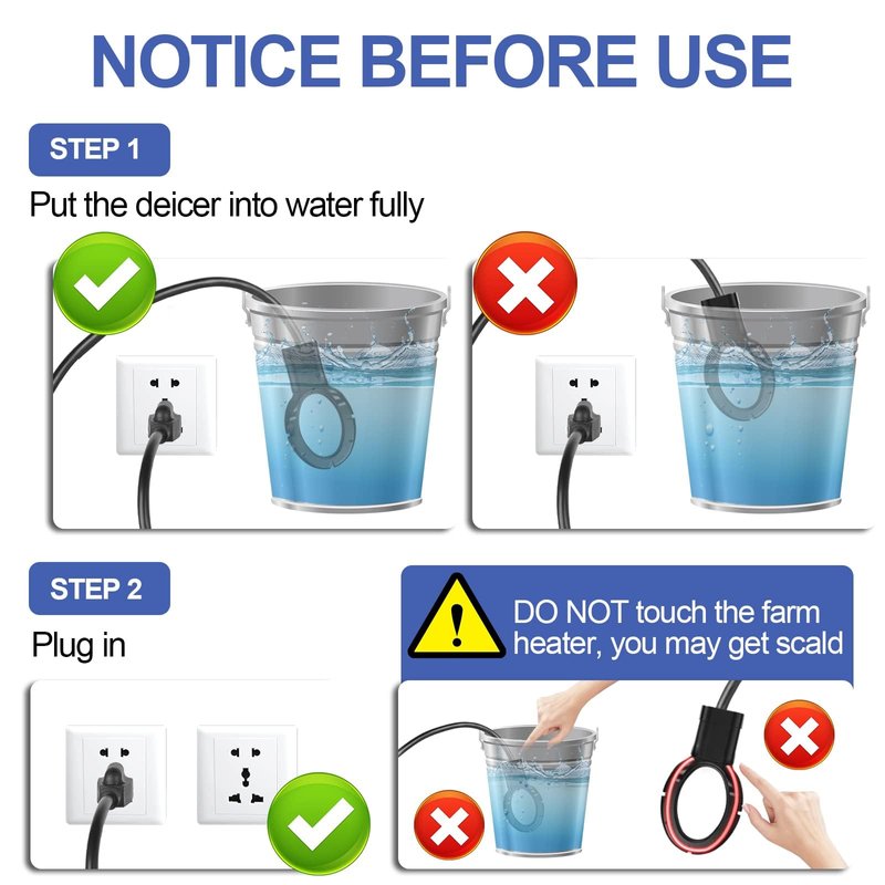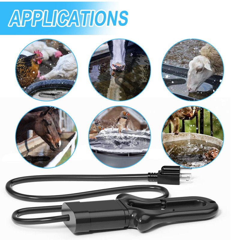 Animal Water Heater for Winter: Designed to keep animals hydrated during the winter months, this de-icer can be used to heat water for livestock, wildlife, and even poultry. The device ensures that the water is always at an optimal temperature, preventing animals from getting cold or scalding when drinking.