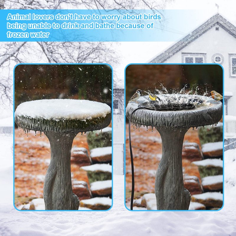 - Because water can freeze during these cold winter months, farmers and animal advocates have found this bird bath heater to be helpful, using it as a de-icer so that the birds can drink when they come.
