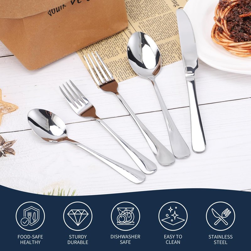 - Dishwasher Safe for Easy Care: Save time and effort with this easy-to-clean silverware set. Simply place it in the dishwasher for hassle-free maintenance and long-lasting shine.