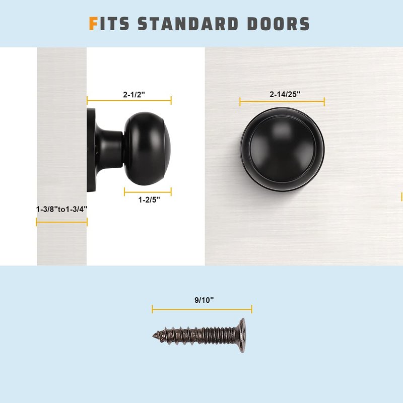 - ONE SIZE FITS MOST: This black door knob fits 1-3/8" to 1-3/4" doors; Reversible for both left handed and right handed doors.
