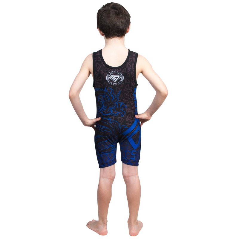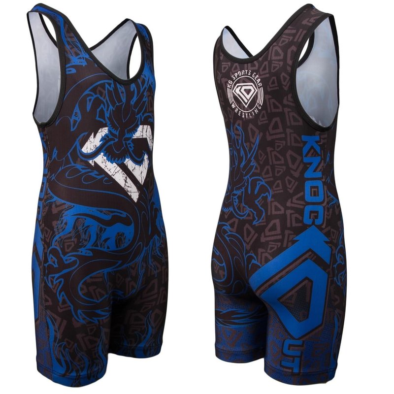 KO Sports Gear - Unisex Wrestling Singlet (Blue Dragon, Youth Medium)