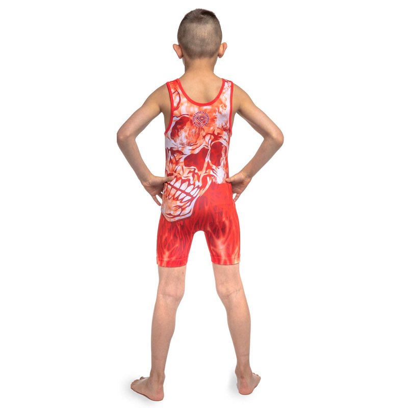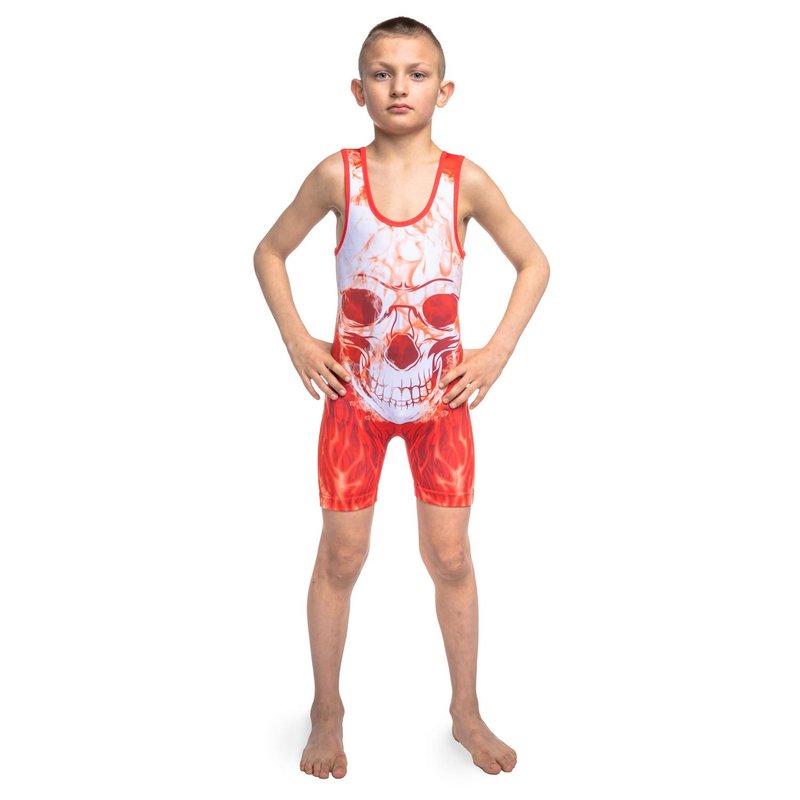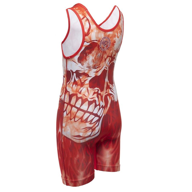 KO Sports Gear - Unisex Wrestling Singlet (Red Skull, Adult Medium)