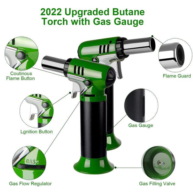 - Compatible with Any Butane Gas: Our butane torch lighter comes with a red inflatable tool and can be used with any brand of butane gas, regardless of nozzle length. You'll never have to worry about compatibility again!