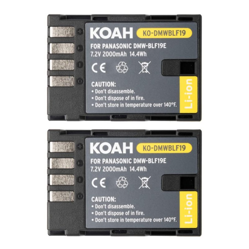 - Included in Box: The Koah 2-Pack 2000 mAh Rechargeable Lithium-Ion Battery Kit for Panasonic DMW-BLF19 with Dual Charger includes two replacement batteries for the Panasonic DMW-BLF19. It also features a USB plug-in portable charger in the box.