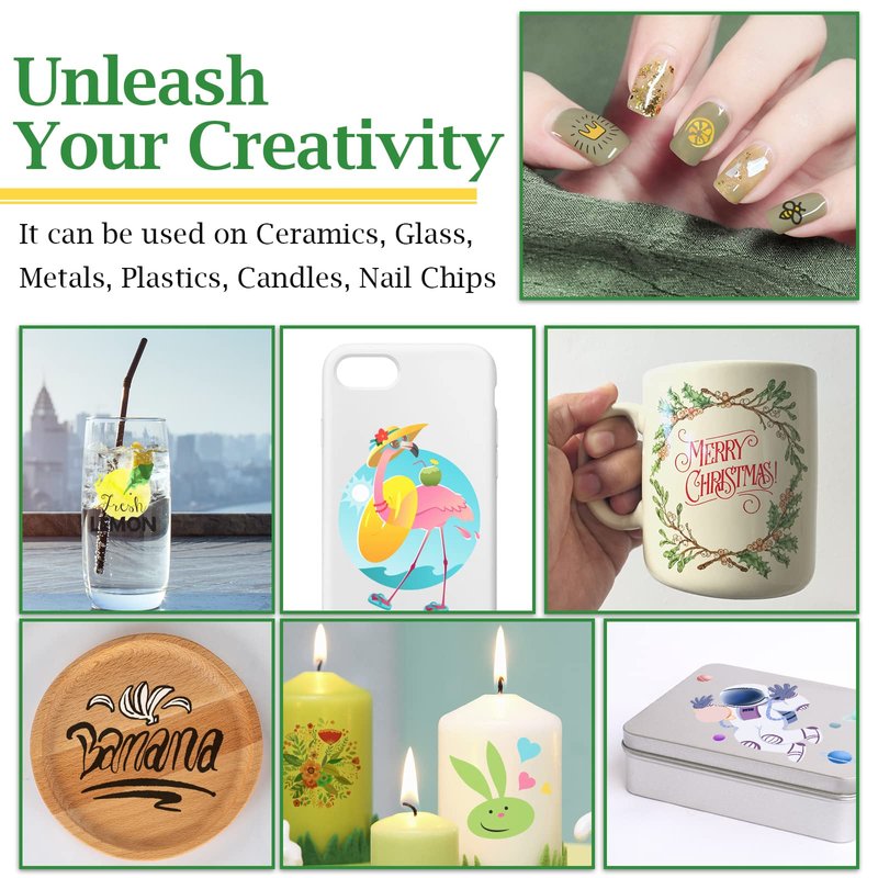 - Endless Possibilities for Crafting: You can print any designs on this laser clear waterslide decal paper, then transfer the designs onto ceramic, glass, wood, plastic, metal, etc. Imagine adding your personalized images onto mugs, tumblers, models, plates, nail arts and so much more. Isn't it cool and interesting?