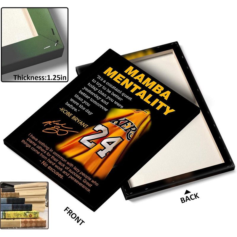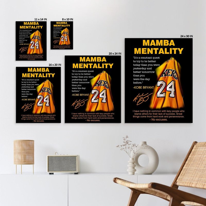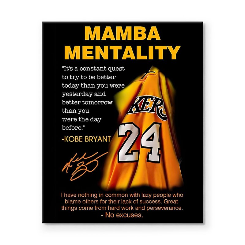 Kobe Bryant Canvas Wall Art Decor - Mamba Mentality Poster with Iconic Jersey and Inspirational Quotes, Motivational Artwork for Home and Office Decoration 8X10 inch