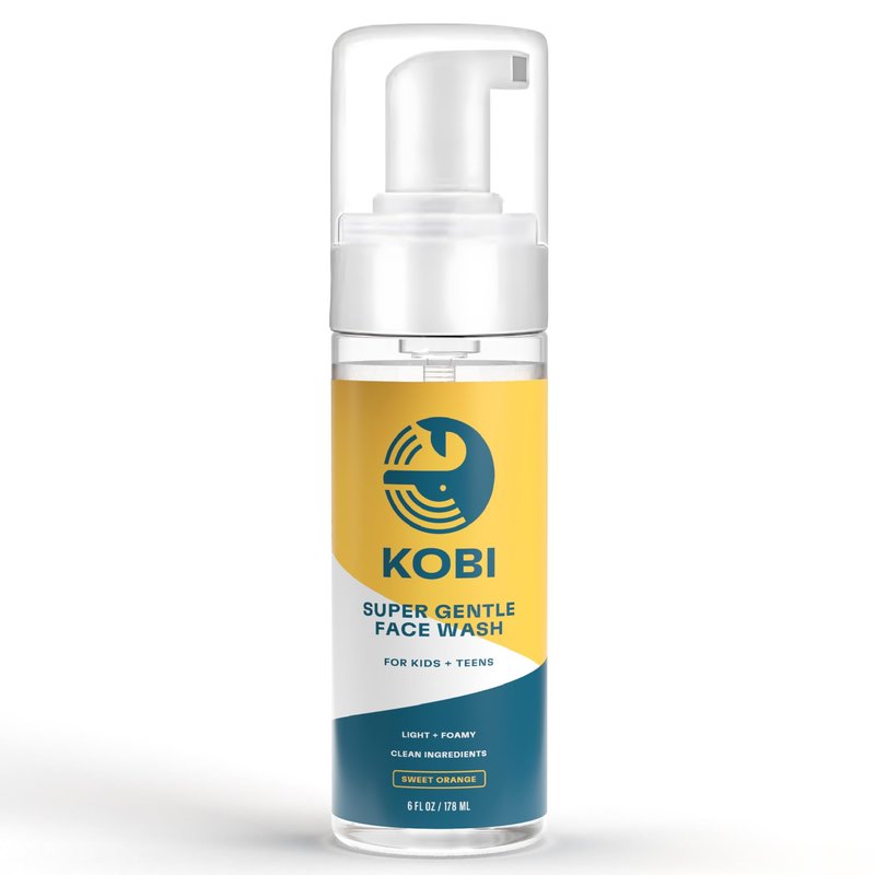Kobi Gentle Face Wash for Teens, Kids, Boys, Girls - Clear, Dye-Free Formula - Natural Foam Facial Cleanser for Sensitive Skin - Sweet Orange