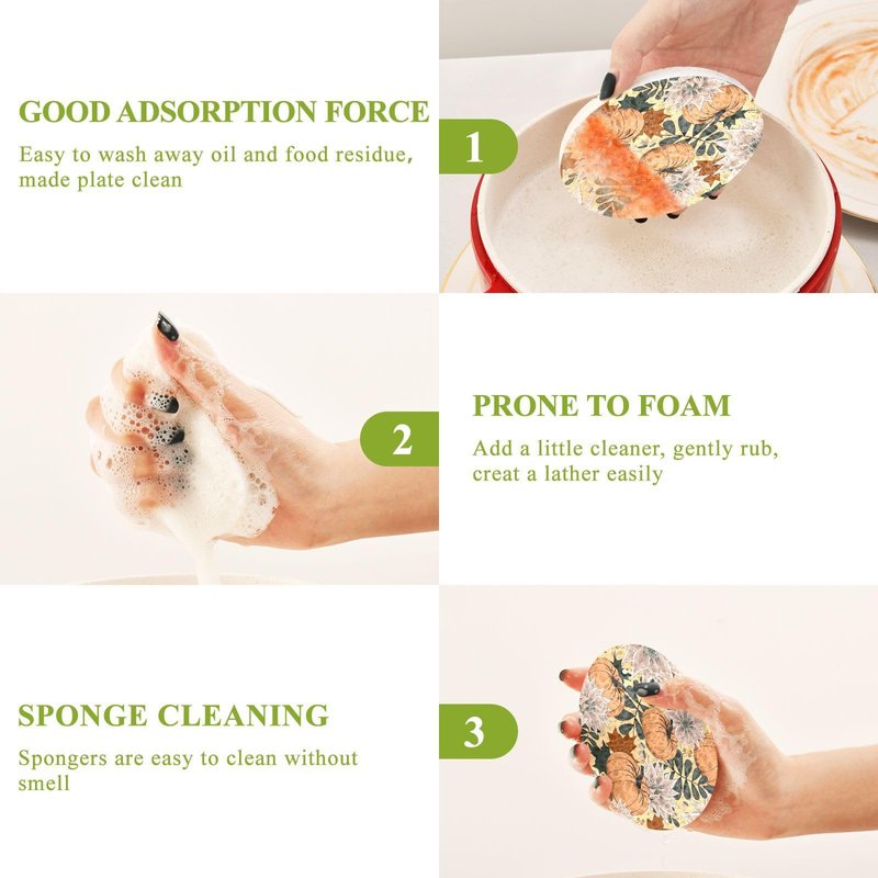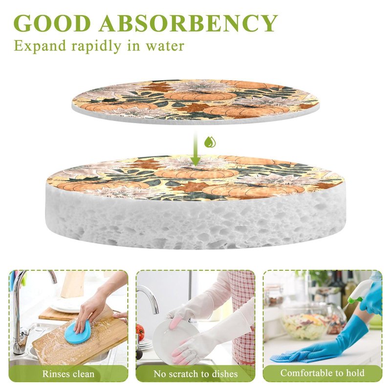 KOCOART Dish Sponges Kitchen Autumn Pumpkins Leaves Scrub Sponge Fall Thanksgiving Non Scratch Reusable Compressed Cellulose Sponge Hanging for Household Cleaning Washing Dishes Pots and Pans 3 Pack