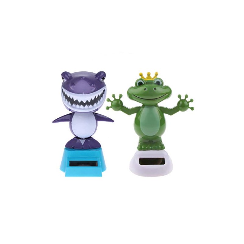 KODORIA 2pcs Solar Powered Dancing Toys Swinging Animated Bobble Head Dancer Toy Car Decor Ornament Frog + Shark