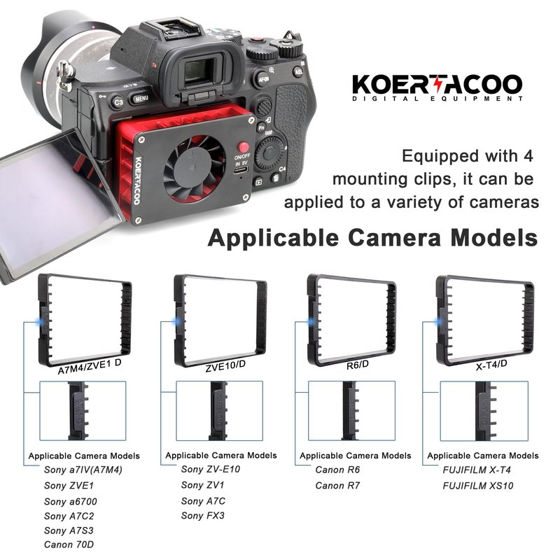 KOERTACOO Camera External Cooling System/Cooling Fan for Live Broadcast - with Cooling Sheet - for Sony A7M4/ZVE1/A6700/A7C2/ZV-E10/ZV1/A7C/A7S3/FX3,for Canon R5/R6, for Fujifilm X-T4/XS10 Cameras