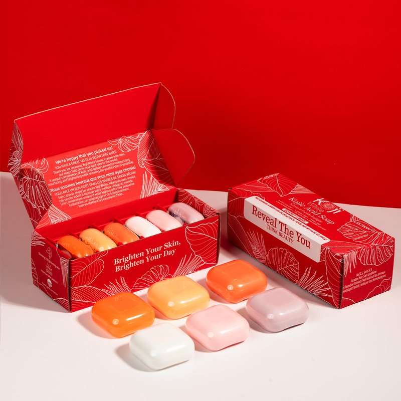 - KOJI ACID SOAP FOR GLOWING SKIN – containing 6 bars of Koji soap formula’s to brighten your skin, dark spots and reduce fine lines, this set of Kojie soap will fast become an essential part of your daily beauty routine – helping you achieve a wonderful even skin tone and radiant complexion!