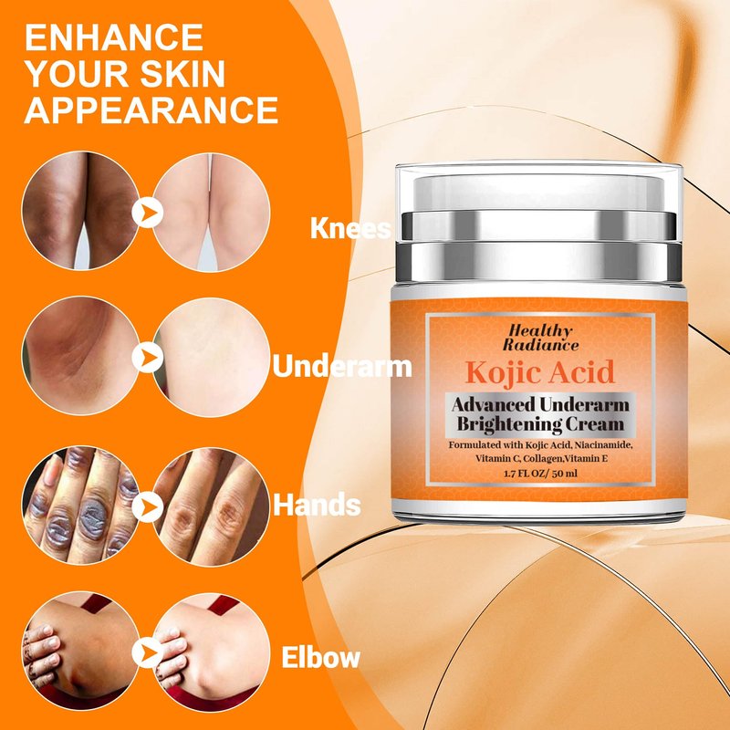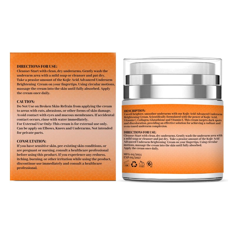 - ✅Kojic Acid : is a powerful and gentle solution for those seeking to brighten and even out the skin tone of their underarms. With regular use, this cream can help achieve smoother, lighter, and more radiant underarm skin.